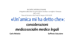 Dal punto di vista medico. Entrando ora come medici nella tematica in oggetto ci domandiamo in modo retorico: basterà soltanto la propria cultura informata, soprattutto da amici esperti e dai “mass media”, a fornire quelle basi di conoscenza opportune per gestire una corretta strategia preventiva o integrativa?